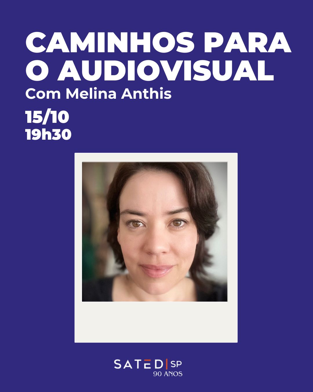 Na próxima quarta-feira, 15 de outubro, às 19h30, o SATED/SP promove um encontro imperdível com Melina Anthis, intitulado “Caminhos para o audiovisual”. Melina é atriz, professora de atuação, preparadora de atores e diretora de elenco, e compartilhará sua vasta experiência e conhecimento sobre o mercado audiovisual.