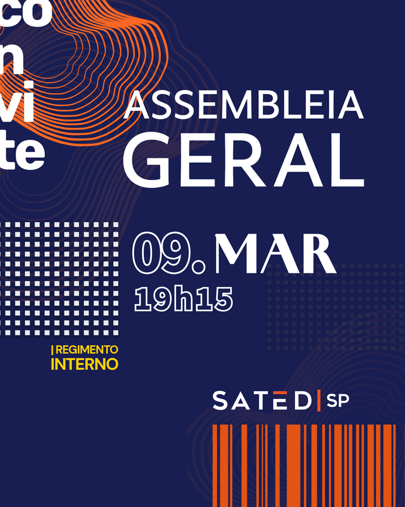SINDICATO DOS ARTISTAS E TÉCNICOS EM ESPETÁCULOS DE DIVERSÕES DO ESTADO DE SÃO PAULO – SATED/SP, CNPJ 62.494.174/0001-05, com endereço na Av. São João, 1086, cj. 401/402, Centro, em São Paulo – Capital, por seu Presidente Rudifran de Almeida Pompeu, nos termos do estatuto em vigor, convoca todos(as) sócios(as) e não sócios(as), em pleno gozo de seus direitos para participarem da ASSEMBLEIA GERAL EXTRAORDINÁRIA que será realizado no dia 09 de março de 2026 às 19h15 em primeira convocação e às 19h30min em segunda convocação, a realizar-se no formato on-line, por meio de acesso à plataforma ZOOM. O credenciamento será feito por meio do preenchimento de formulário disponibilizado no site oficial do sindicato e em suas redes sociais para discussão e deliberação das seguintes ordens do dia: