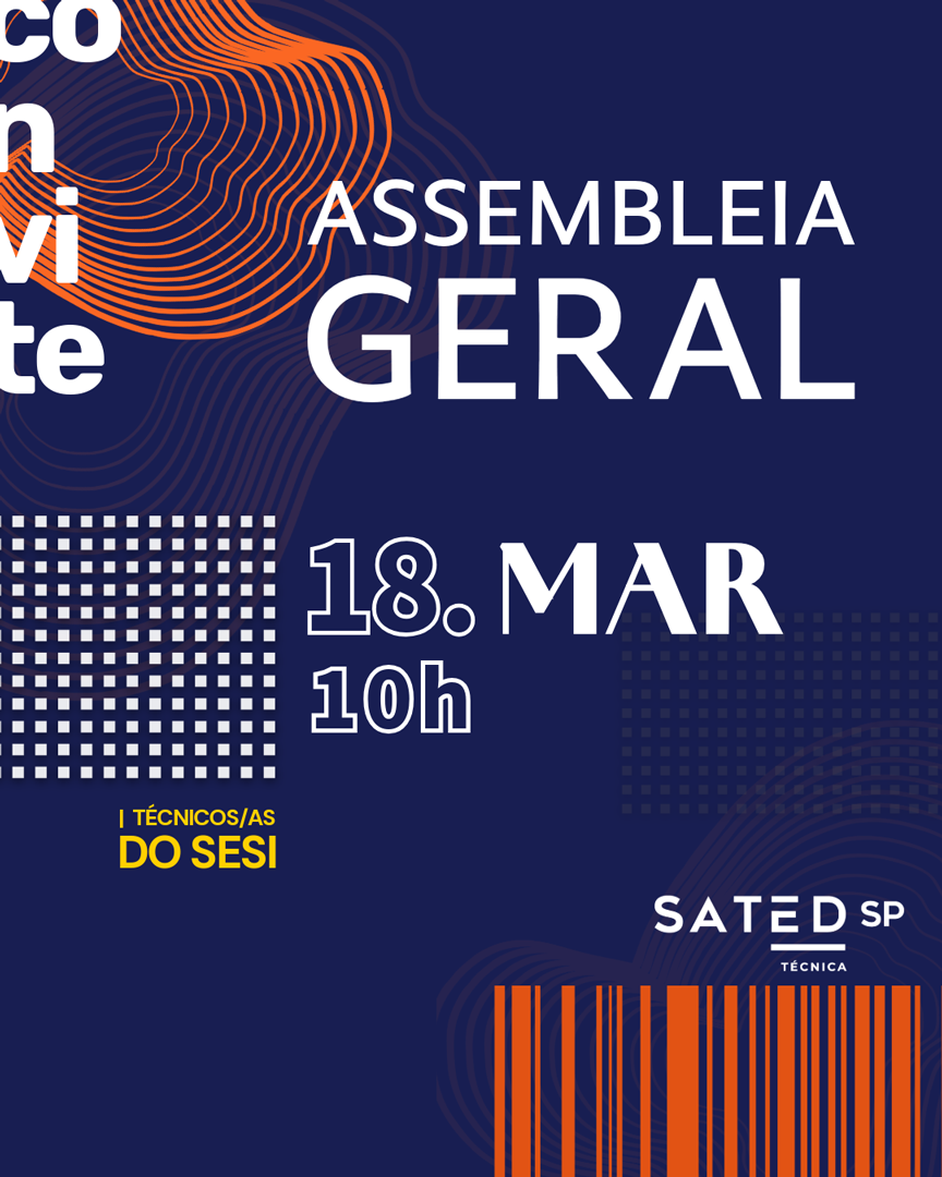 SINDICATO DOS ARTISTAS E TÉCNICOS EM ESPETÁCULOS DE DIVERSÕES DO ESTADO DE SÃO PAULO – SATED/SP, CNPJ 62.494.174/0001-05, com endereço na Av. São João, 1086, cj. 401/402, Centro, em São Paulo – Capital, por seu Presidente Rudifran de Almeida Pompeu, nos termos do estatuto em vigor, convoca todos(as) sócios(as) e não sócios(as), em pleno gozo de seus direitos para participarem da ASSEMBLEIA GERAL EXTRAORDINÁRIA que será realizado no dia 18 de março de 2026 às 10h em primeira convocação e às 10h15min. em segunda convocação, a realizar-se no formato on-line, por meio de acesso à plataforma ZOOM.