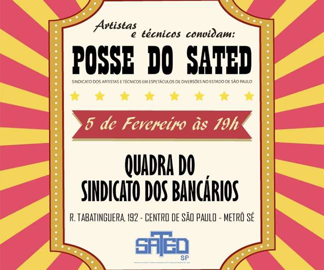 O governo do Estado de São Paulo abriu inscrição para que entidades representativas da área Cultural participem da indicação das bancas julgadoras do PROAC/ EDITAIS. O SATED/SP convoca seus associados para um encontro em sua sede às 15 H, na sexta feira próxima, dia 19/01/2018, para indicação de nomes.