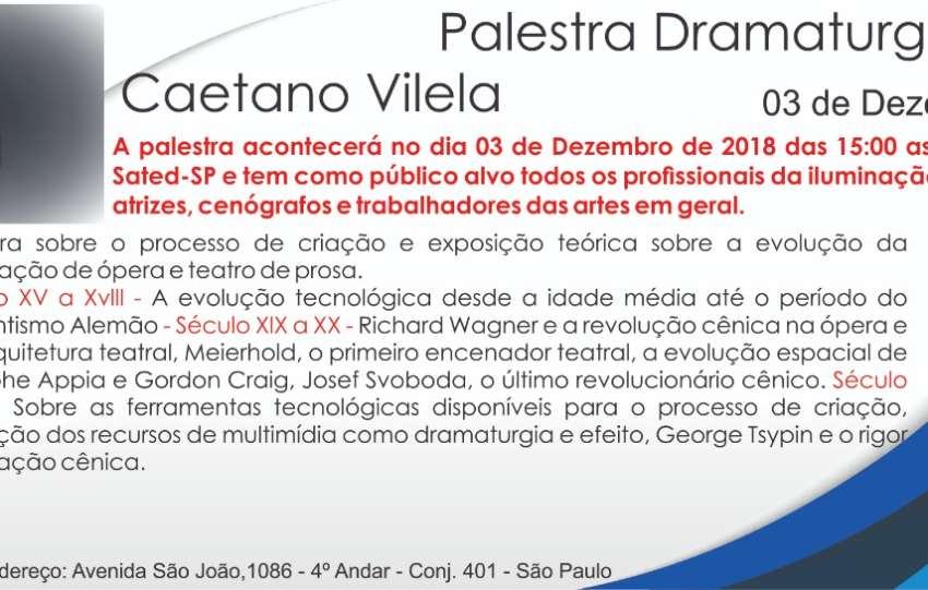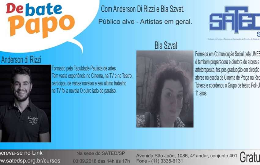 DEBATE PAPO Financiamento da Produção Teatral nos EUA e políticas pública para o setor na cidade de Minneapolis com Tate Sheppard. Bacharel em Teatro e Letras pela University of Minnesota atualmente desenvolve pesquisa sobre as políticas públicas para teatro na cidade de São Paulo. Dia 11 de novembro de 2019 das 19 H às 22…